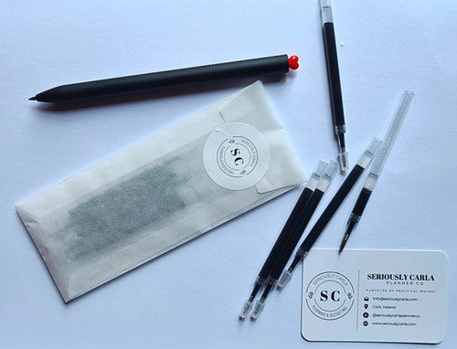 Pack of 5 black gel ink refills for our Kaco First Love Pen. 0.5mm tip.